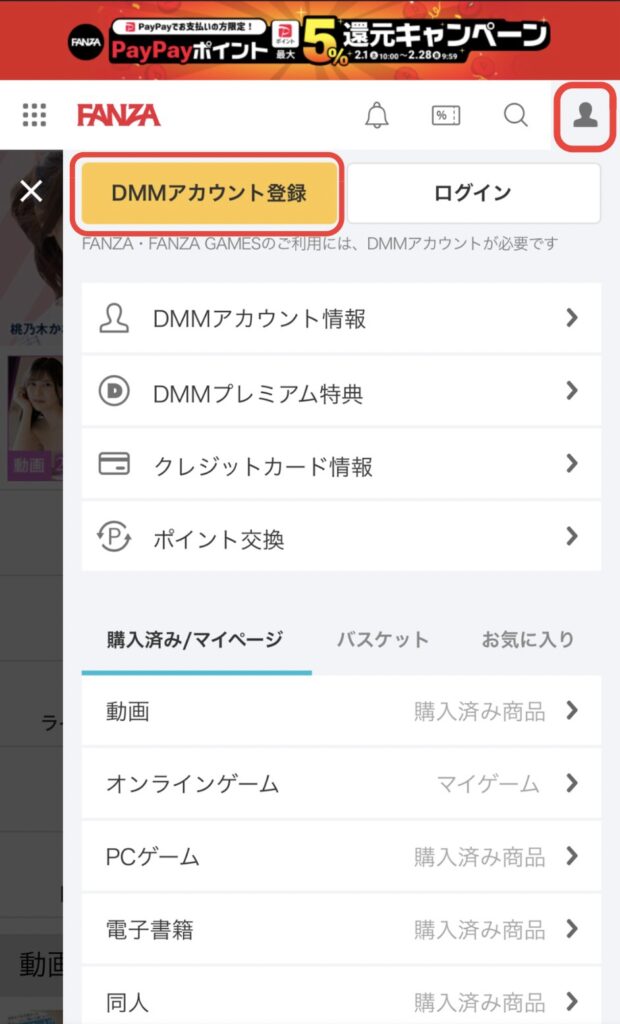FANZAはDMMのアダルト版サイトなので、アカウントはDMMと共通となります